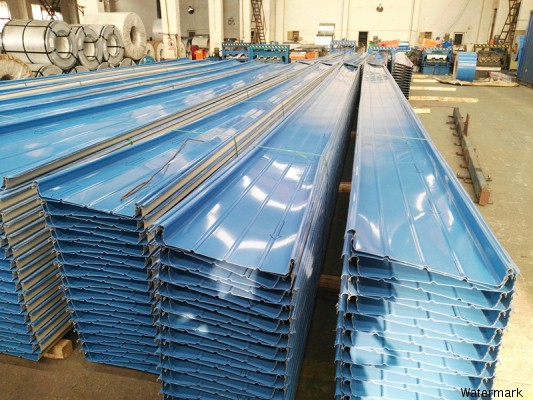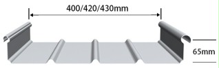 YX65-420铝镁锰直立锁边屋面板采用现场压型的生产方式,其优点在于:可在工地现场根据工程的实际需要生产任意长度的屋面板,不受运输条件限制,屋面板在顺坡方向通长无搭接,从而避免屋面板的纵向搭接,减小漏水的可能性,提高屋面的整体性和美观性。