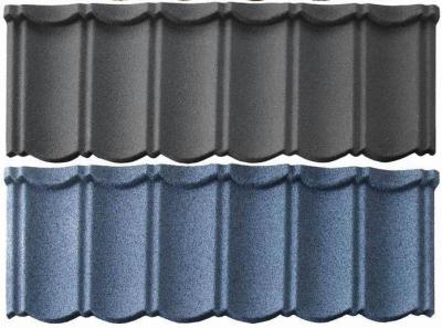 是由镀铝锌钢板作为基材、彩色砂粒、底漆和丙烯酸树脂构成。其中镀铝锌钢板基材是由55%铝,43.4%锌和1.6%硅组成的电镀液经电镀而成的,其加工性、涂装性与镀锌钢板基本相同。彩色砂粒是金属瓦的装饰层及基层保护层,它是由一定粒径的颗粒经高科技着色工艺和高温烤制而成的。具有十多种颜色,可耐紫外线照射,能减轻雨水给金属瓦造成的噪音,使彩色钢板瓦色彩丰富庄重,装饰性更好,这是一般彩色压型钢板所不具备,也是不能比的。底漆作为瓦的特殊材料,它是使镀铝锌钢板与彩色砂粒进行良好粘结的材料,作用大。而丙烯酸树脂作为表面的保护层,防止细部雨水渗漏,能延长砂粒色彩的寿命。